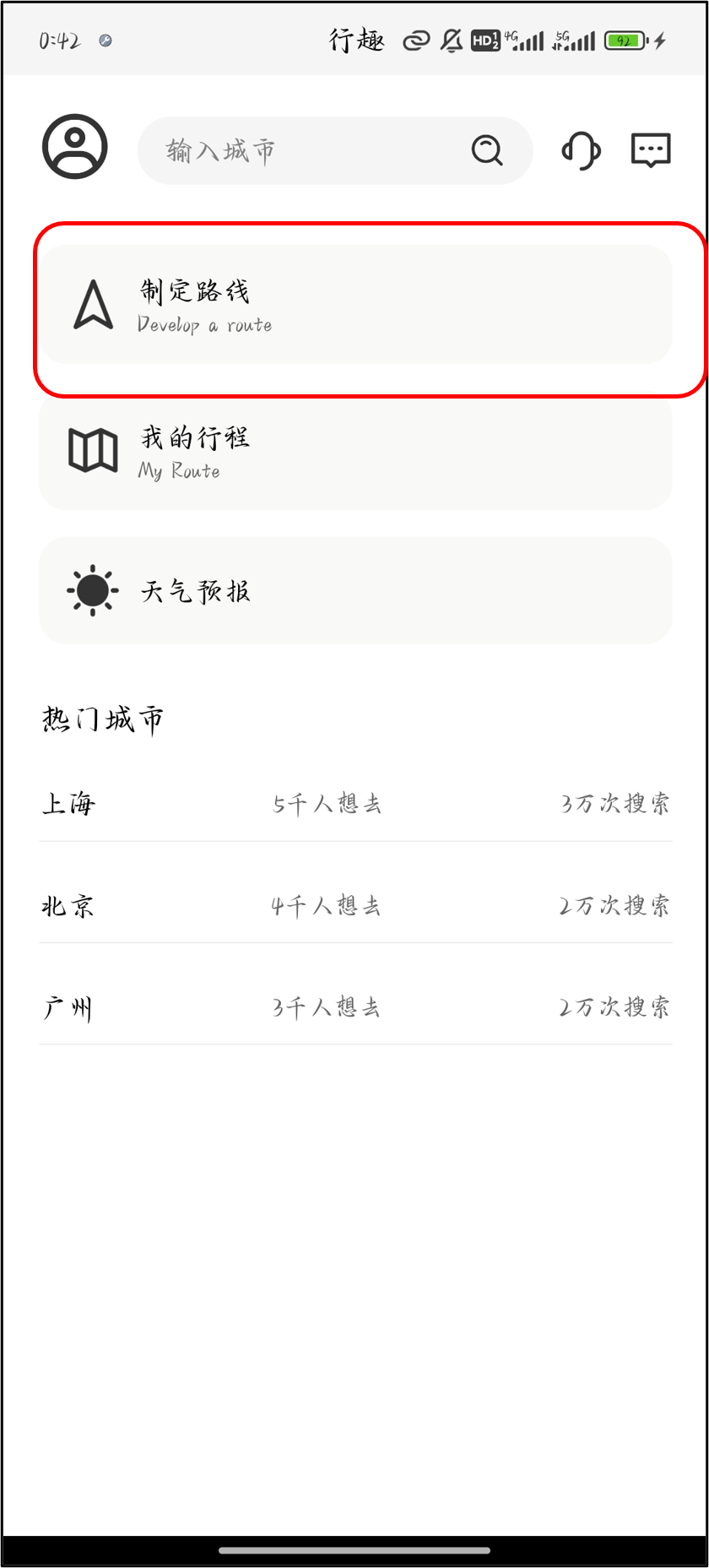 在首页选择制定路线
