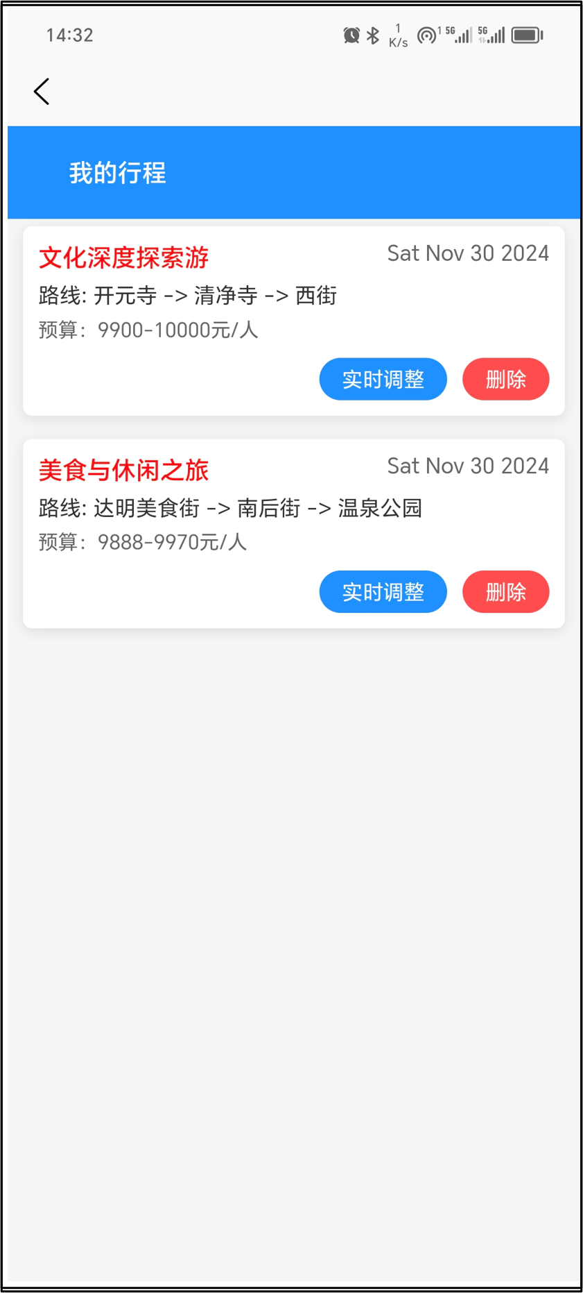 - 解决方案:优化数据库,并添加了行程修改删除功能。