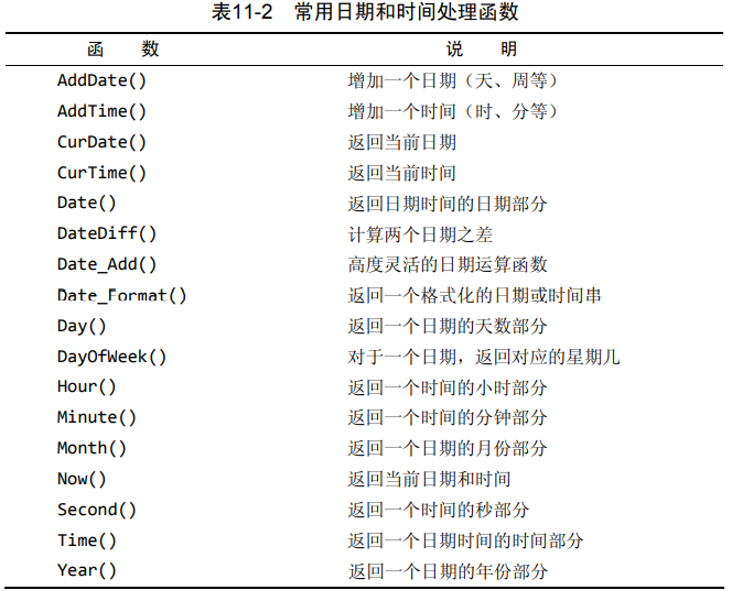 一般,应用程序不使用用来存储日期和时间的格式,因此日期和时间函数总是被用来读取、统计和处理这些值。由于这个原因,日期和时间函数在MySQL语言中具有重要的作用。