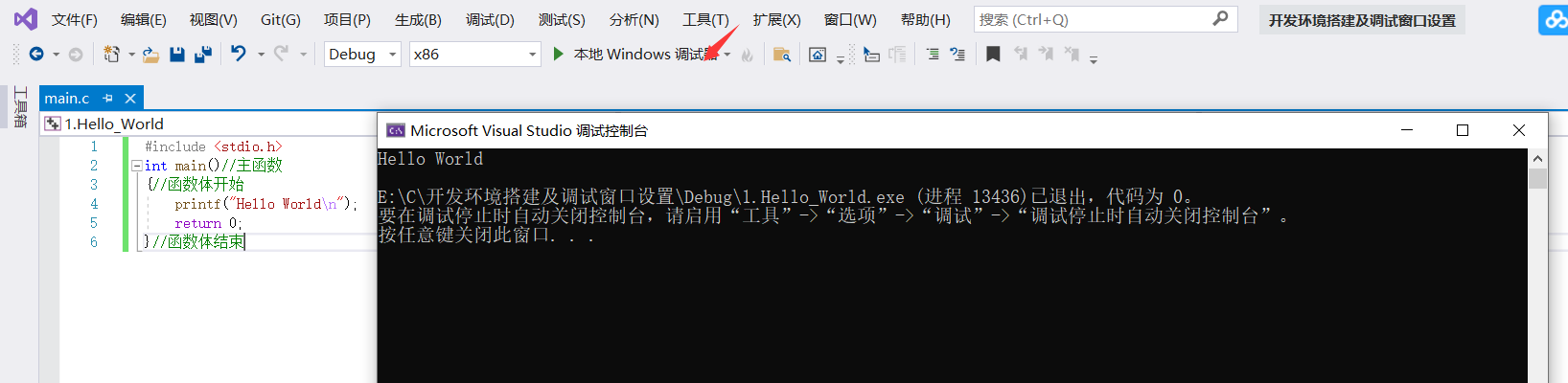 #include <stdio.h> int main()//主函数 {//函数体开始 printf("Hello World\n"); return 0; }//函数体结束