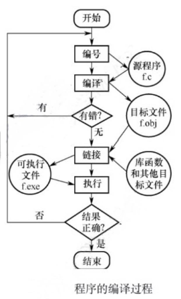 首先编写源程序.c,编写完毕后,通过编译器进行编译,这里的编译包括预处理、编译、汇编。.c经过编译后,得到.obj文件,.obj文件中均是0/1类型的机器码,即CPU能够识别的微指令,.obj文件并不能执行,因为调用的标准库函数的代码并不在.obj文件中。例如,main.c中的printf函数,其代码并不在main.obj中,这时经过链接就得到可执行文件.exe。