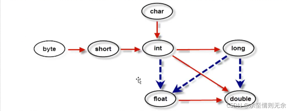 Java 语言表达式所操作的 boolean 值,在编译之后都使用 Java 虚拟机中的int 数据类型来代替 数据类型的转换(容量小的可以自动转换成容量大的,特例:整型常量是int类型,但是可以自动转化为char、short、byte类型)