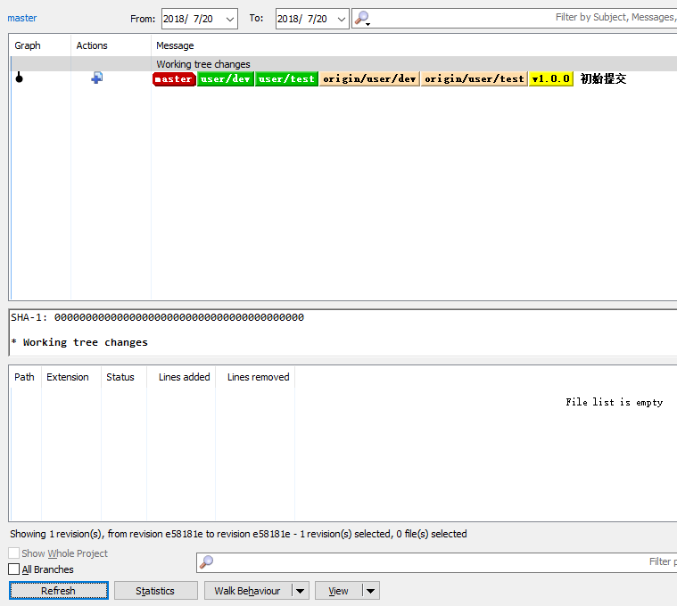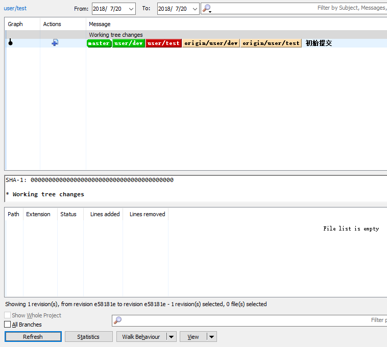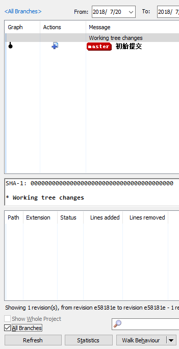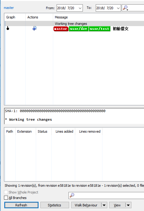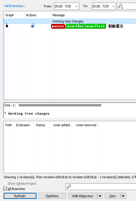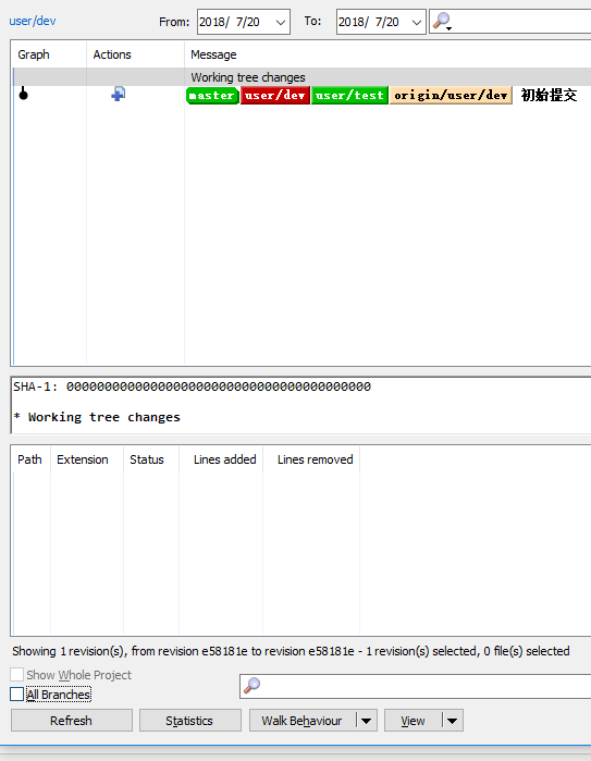 开发分支qliu_demo_20180723 comment代码:(commit和push前后 all Branches选中和不选中效果是一样的)