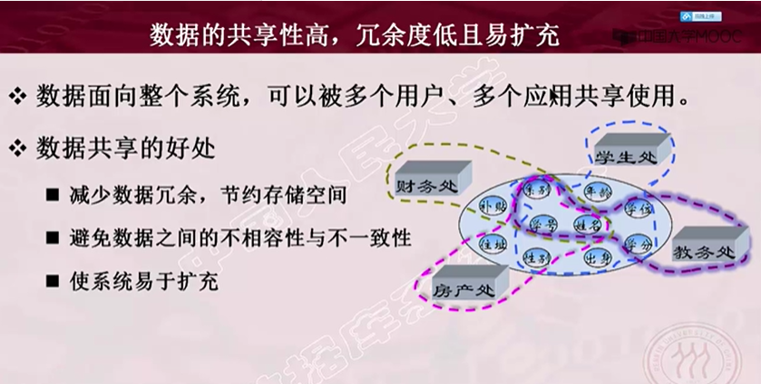 - 数据的共享性高,冗余度低且易扩充