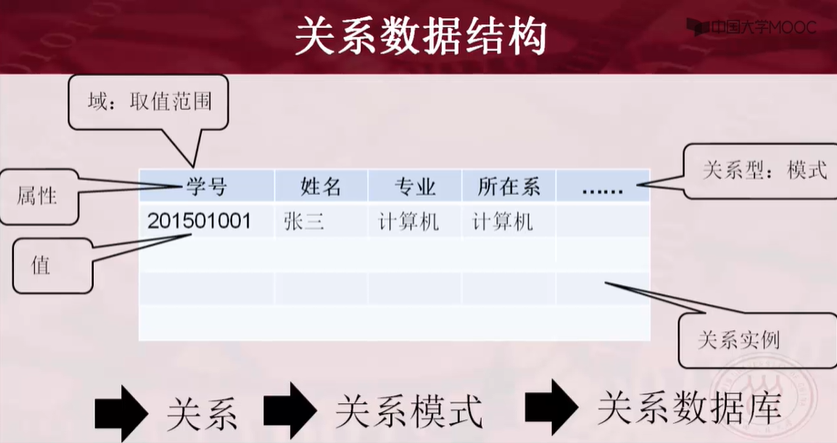 - 语义:学生姓名、性别、出生年份、籍贯、所在系别、入学时间