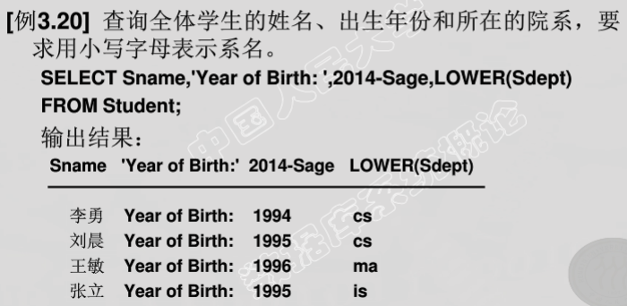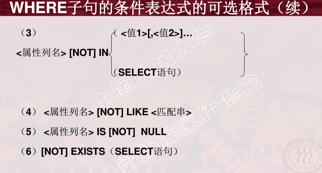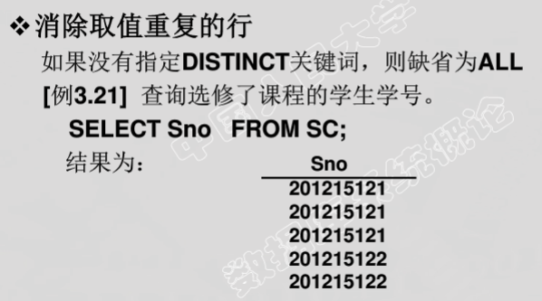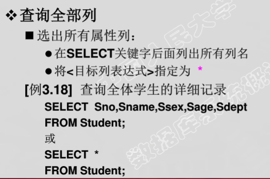 - 选择表中的若干元组