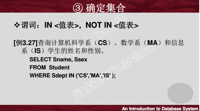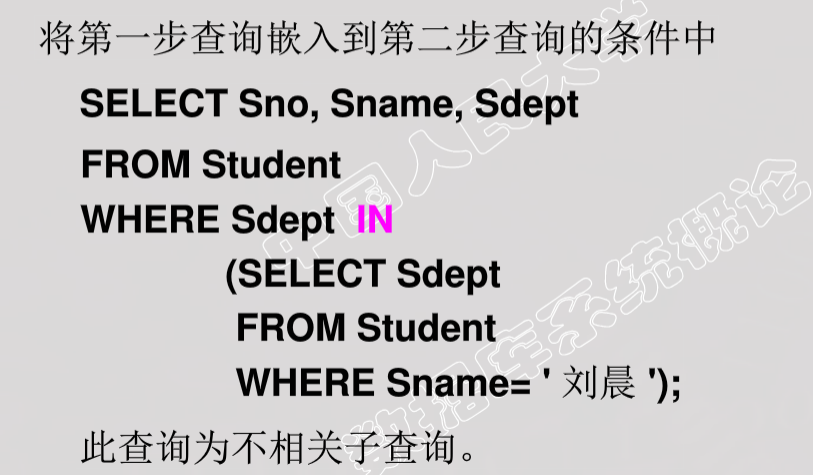 带有in谓词的子查询