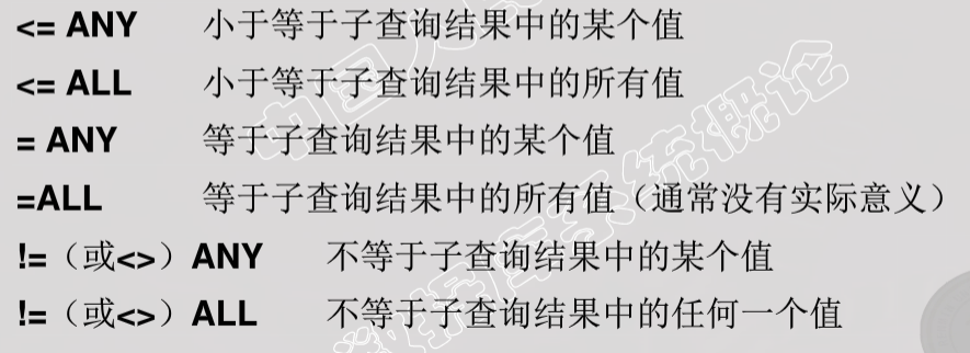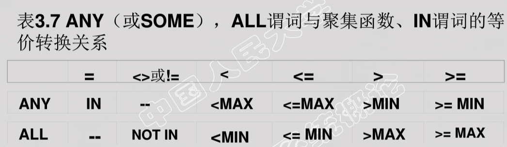 带有ANY或ALL谓词的子查询