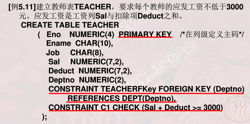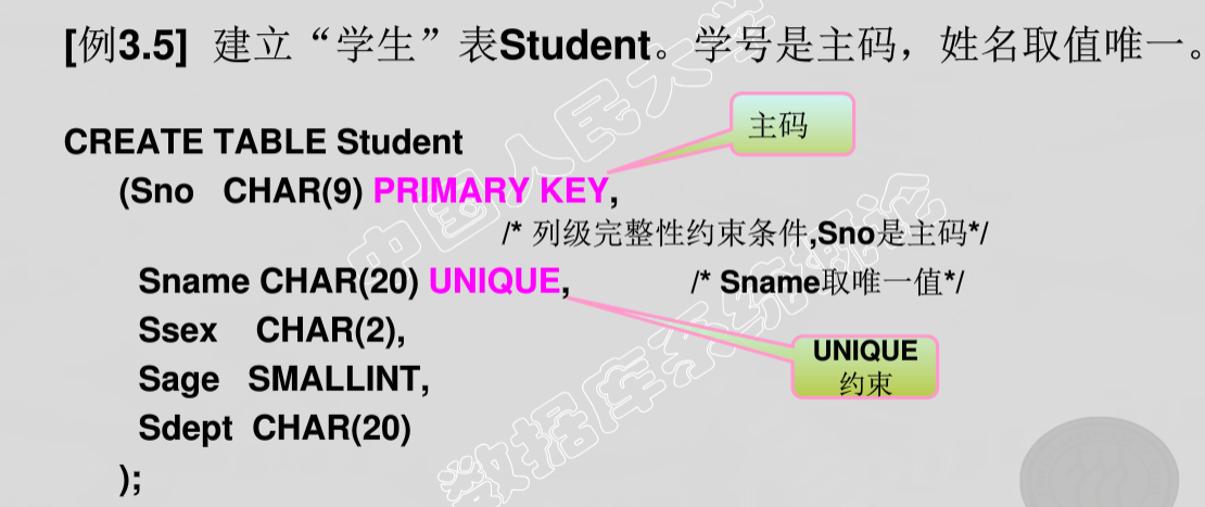 完整性的约束命名子句