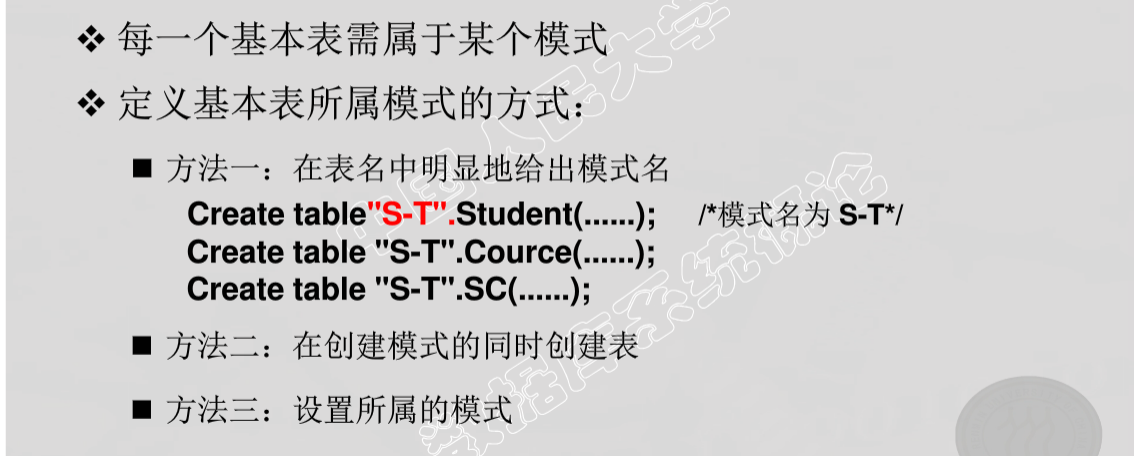- SQL支持关系数据库三级模式结构