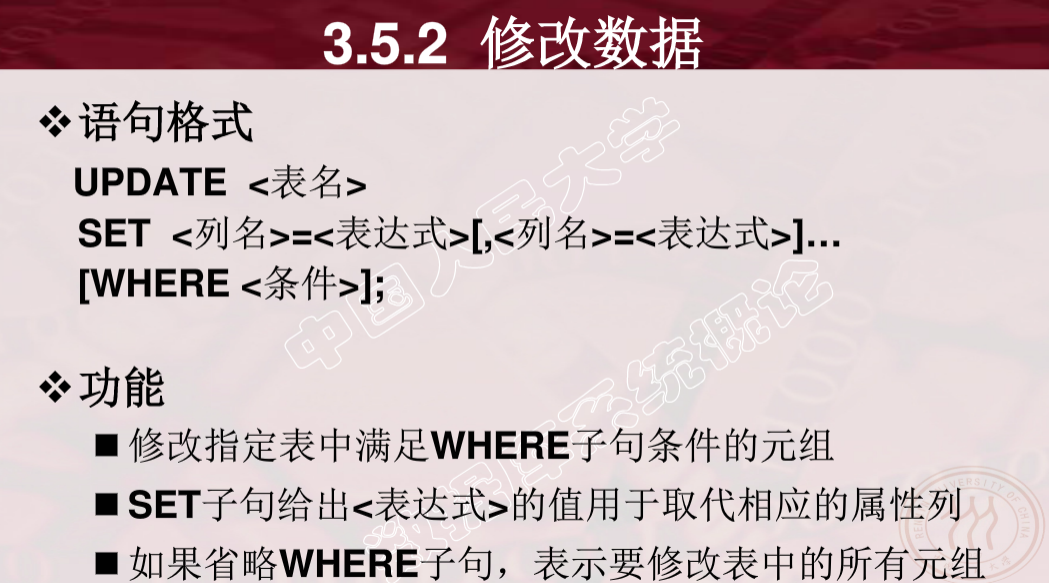 修改某一个元组的值 SET