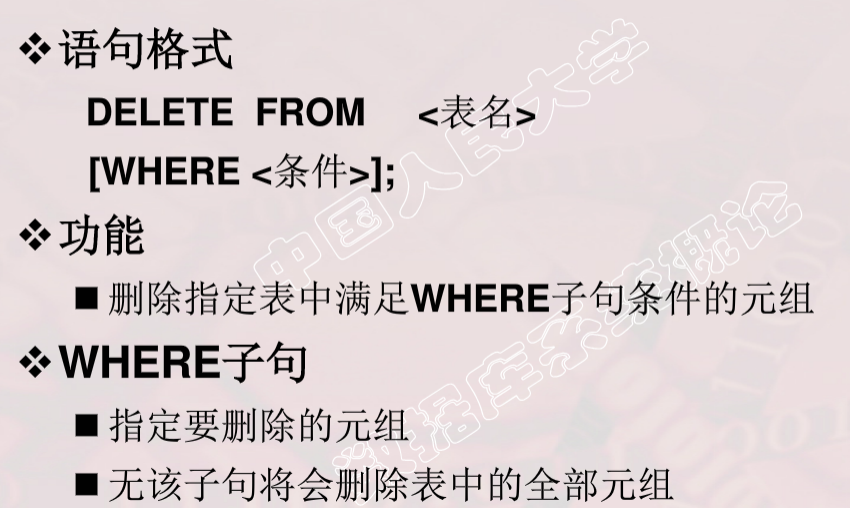 删除某一个元组的值 WHERE