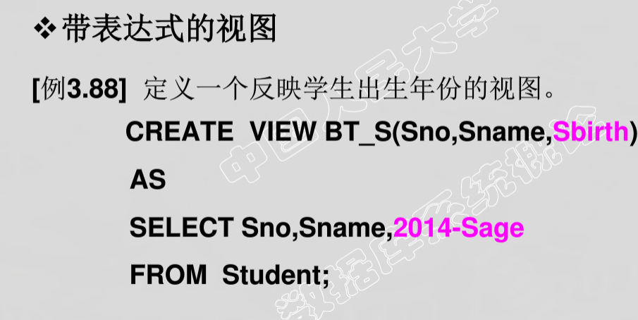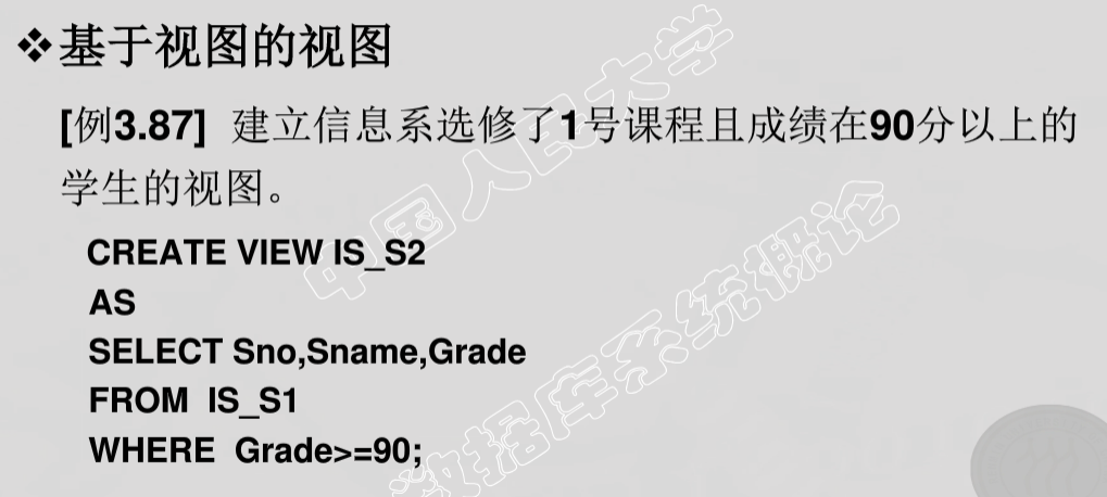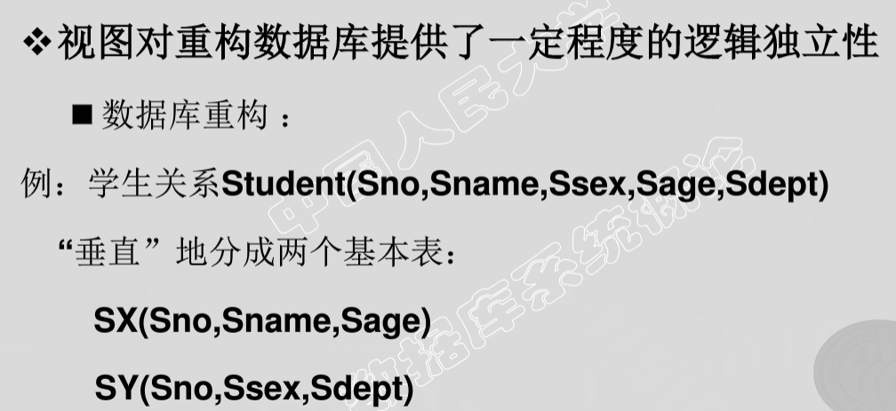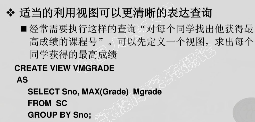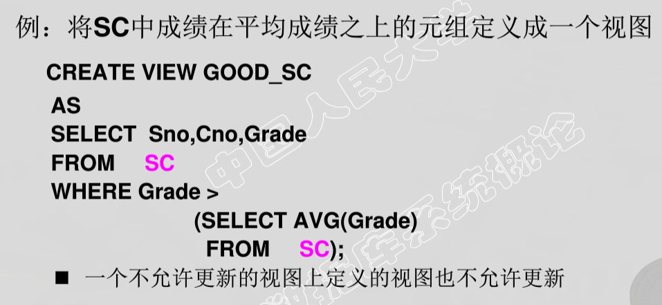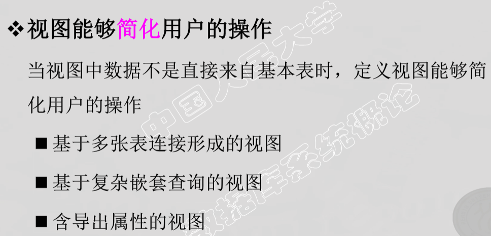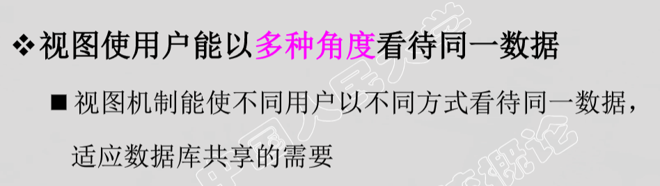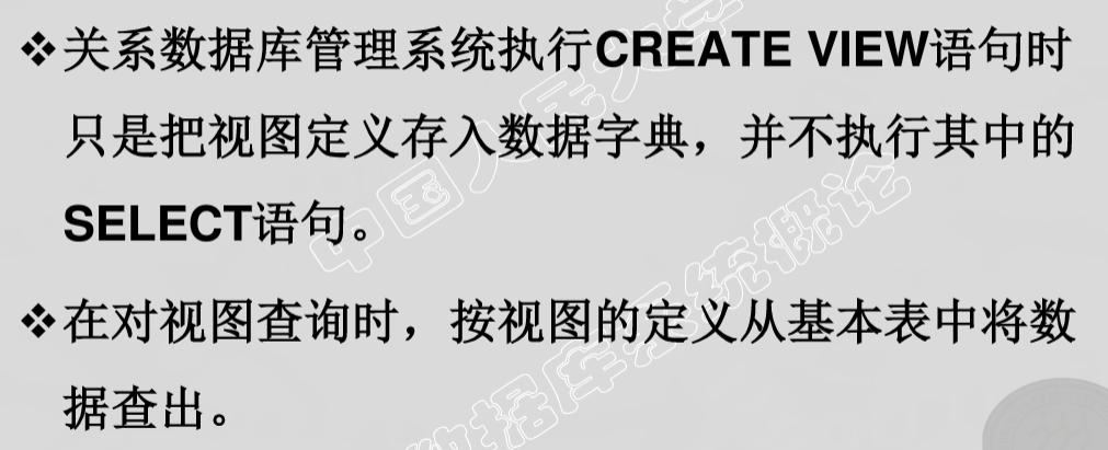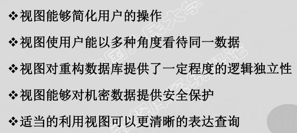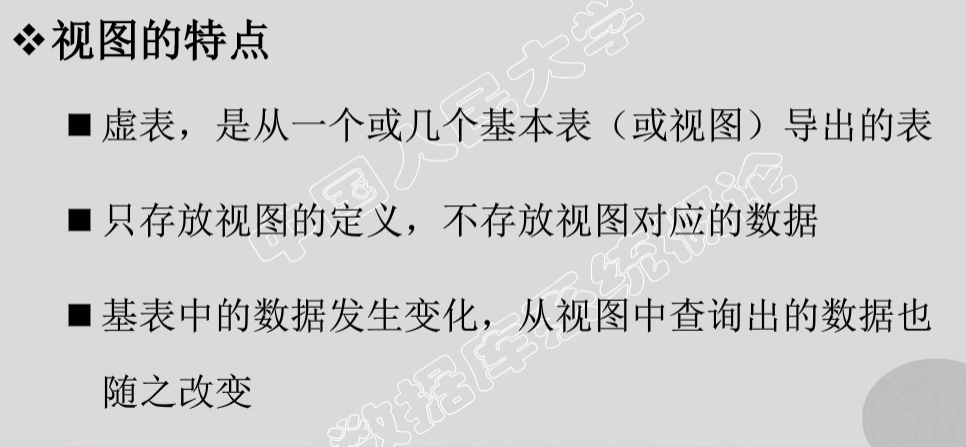 - 数据库中只存放视图的定义而不存放视图对应的数据