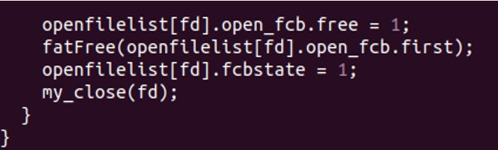 1)my_format:对文件存储器进行格式化,即按照文件系统的结构对虚拟磁盘空间进行布局,并在其上创建根目录以及用于管理文件存储空间等的数据结构。
