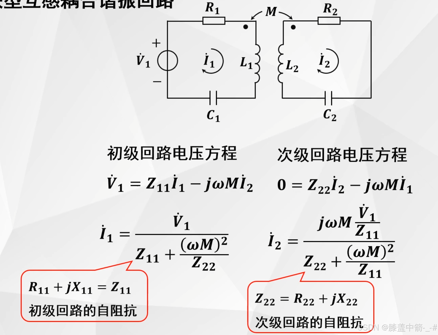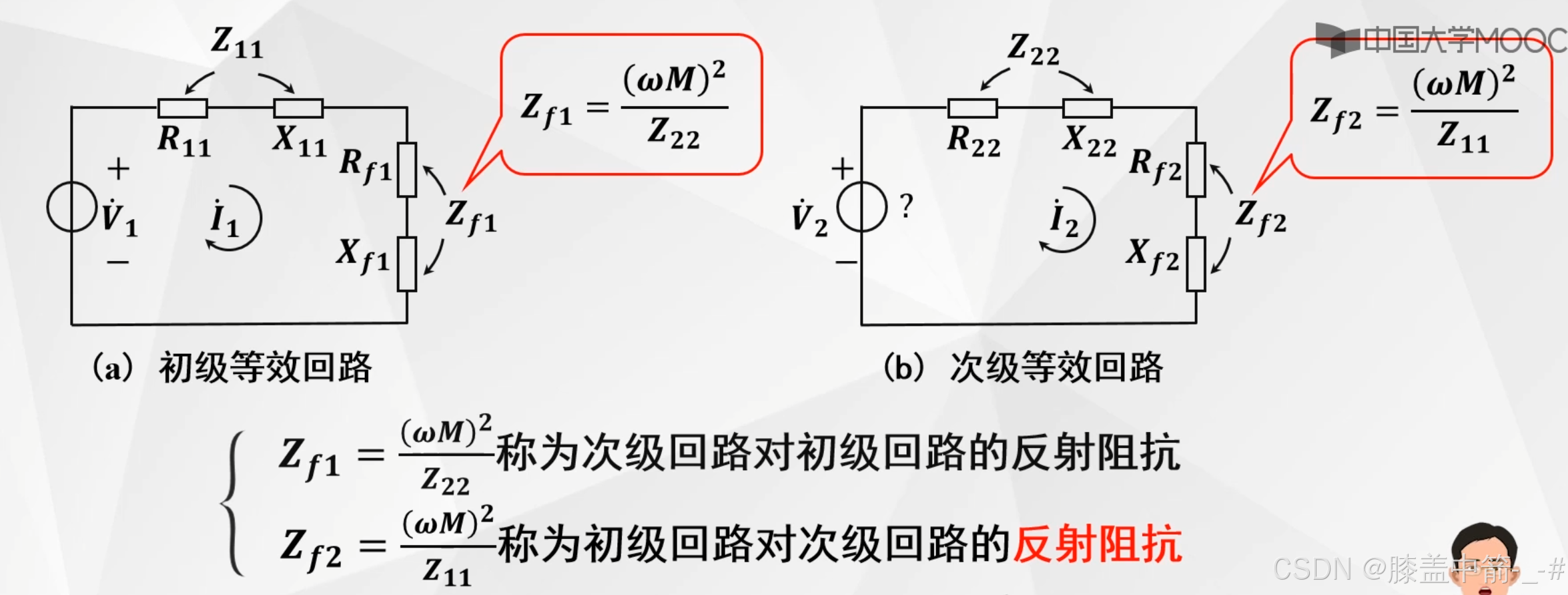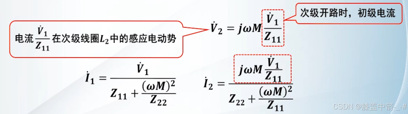 - 分母部分,包括了本回路的自阻抗和另一个回路的自阻抗通过互感M反映到本回路上来的影响。