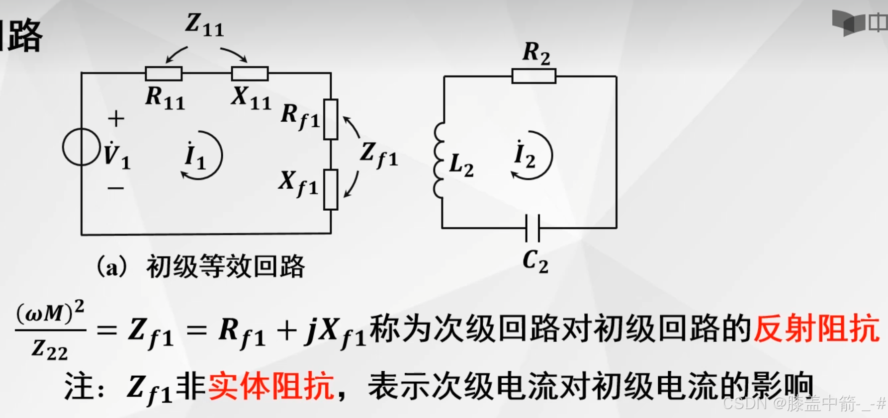 - 画出来后的初级等效回路,包括初级回路的自阻抗,和反射阻抗。