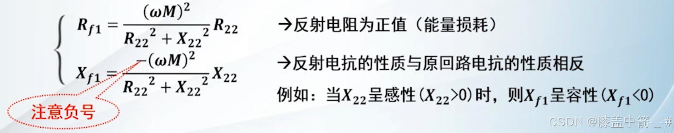 - 对于反射电抗而言,出现了一个负号,代表着次级反射过来的电抗性质发生了改变。
