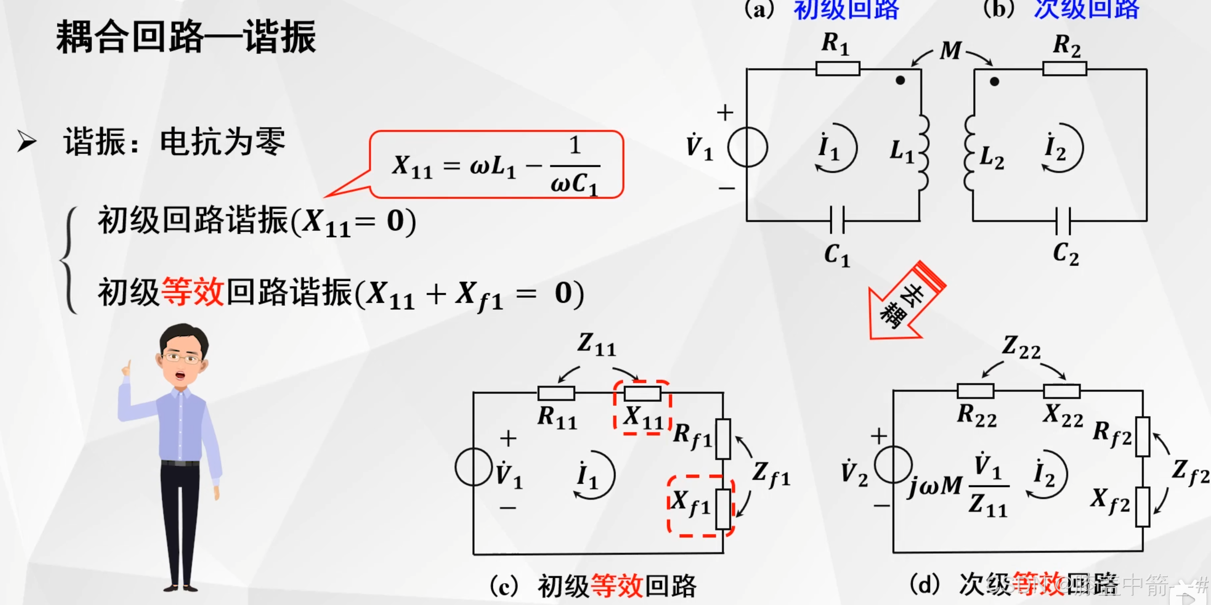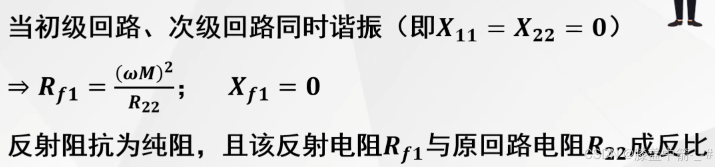 - 初级等效回路谐振,那就是等效回路中所有的电抗之和为零,X11和Xf1。