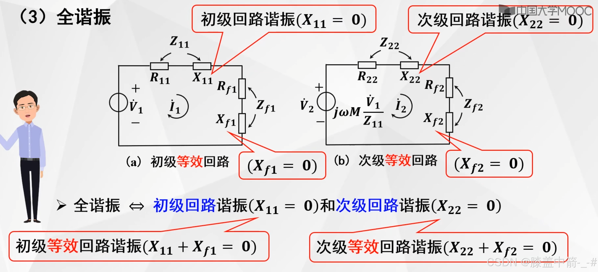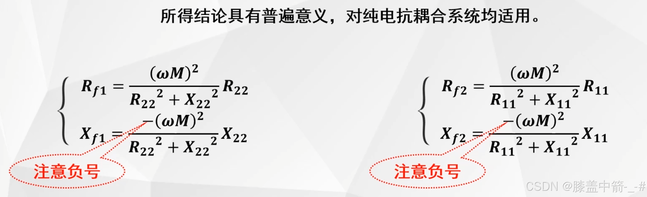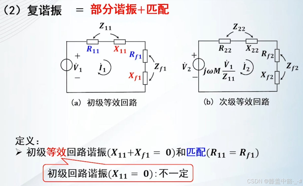 - 总结:根据全谐振的定义可以推得,初级等效回路和次级等效回路都谐振。