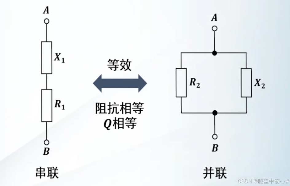 串联和并联形式的电路,要等效,也就意味着阻抗相等,Q值相等。X1是指存在电抗、电感或电容。