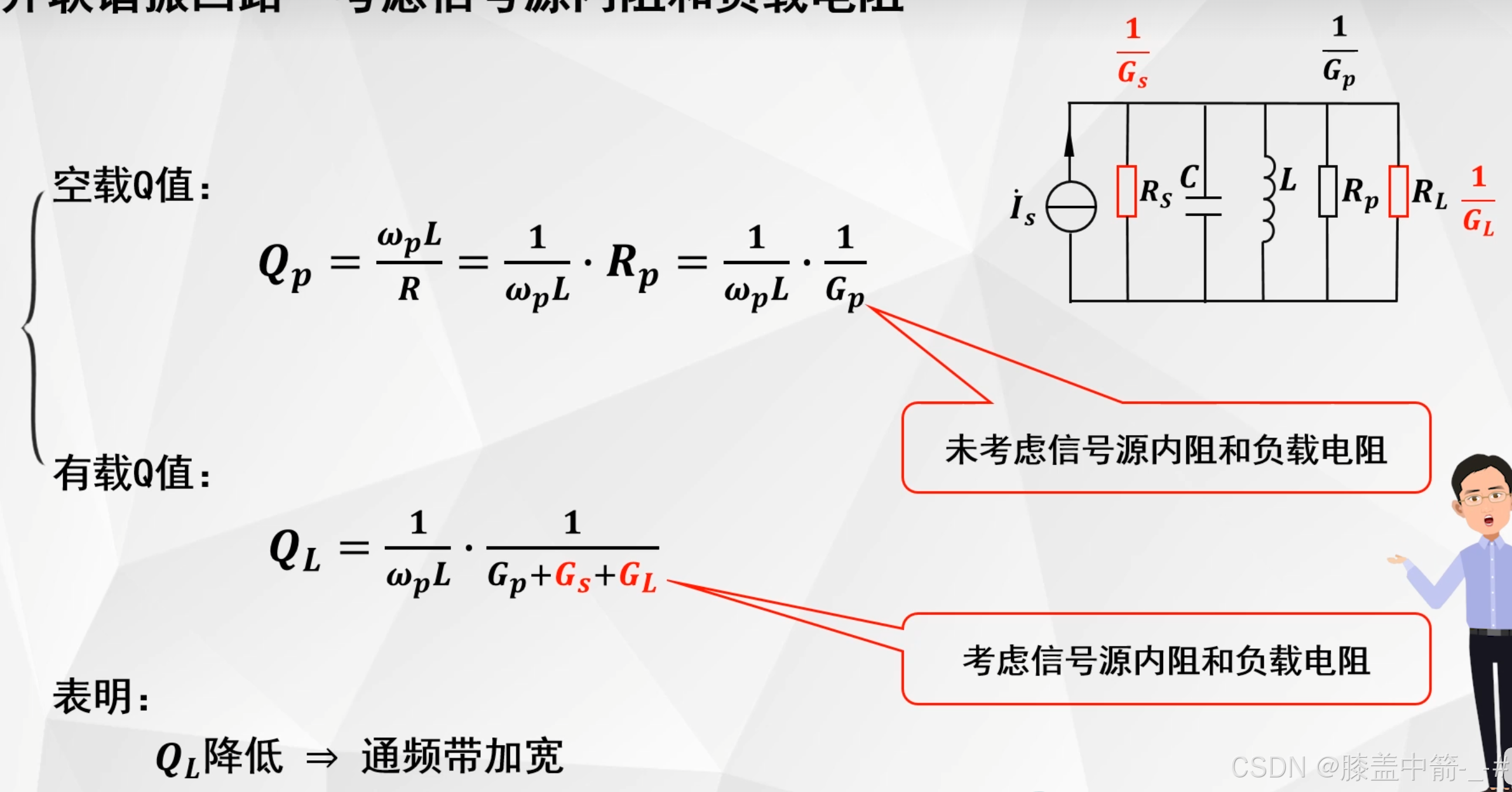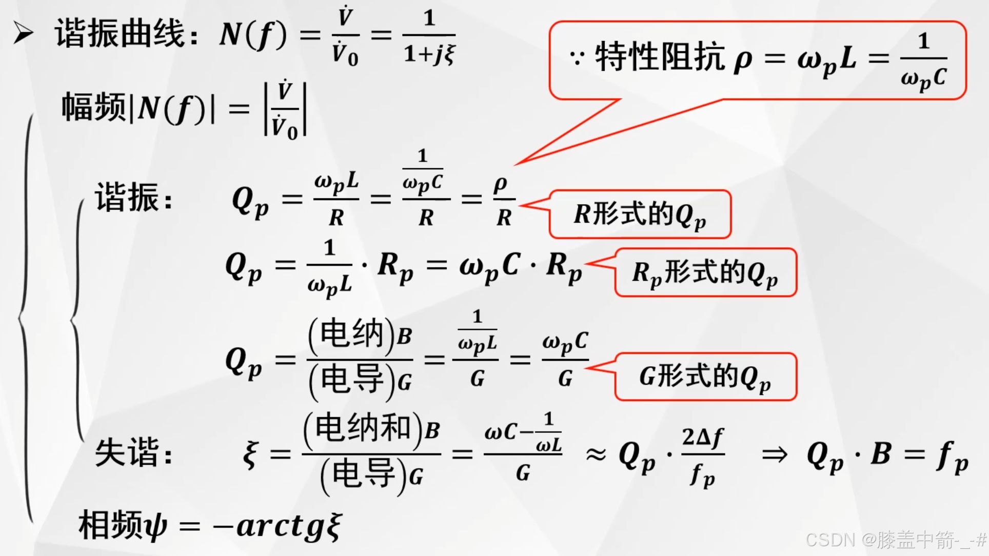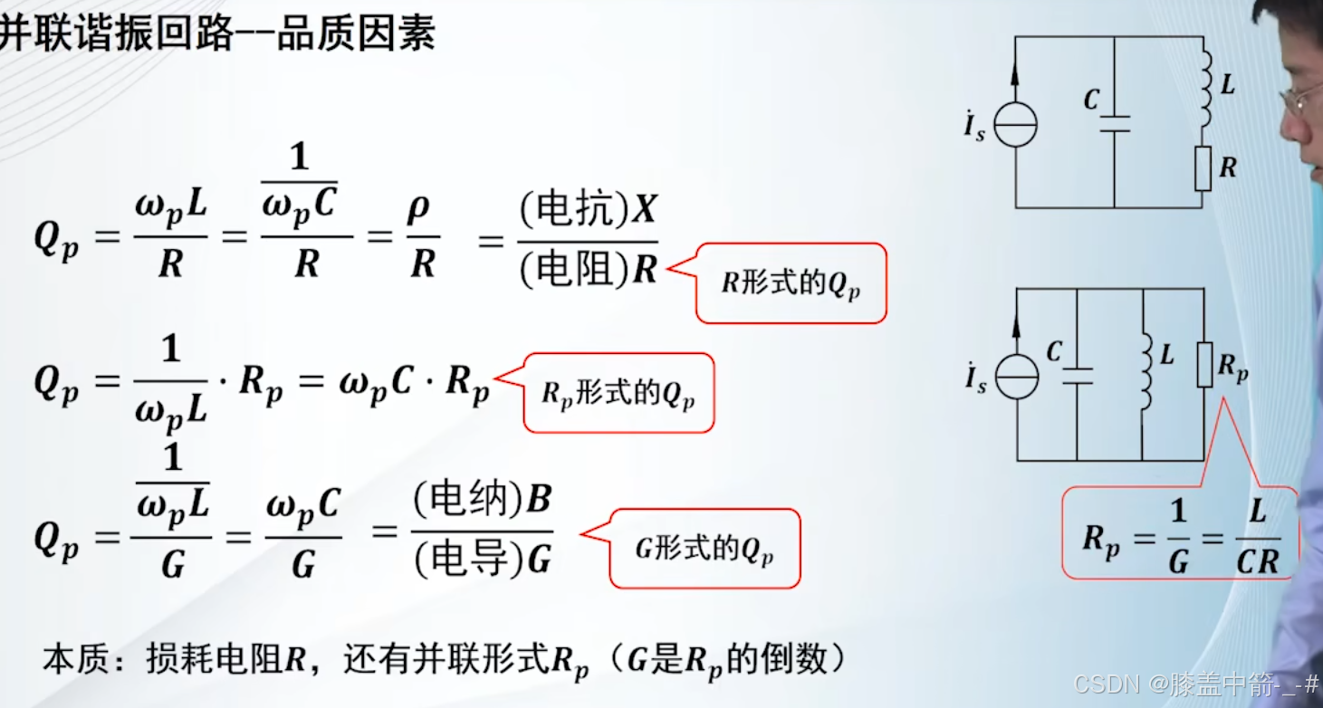 - 由于Rp的倒数是电导,我们还可以得到基于电导形式的品质因素的定义,将Rp换为G分之一就可以得到电导形式的品质因素。