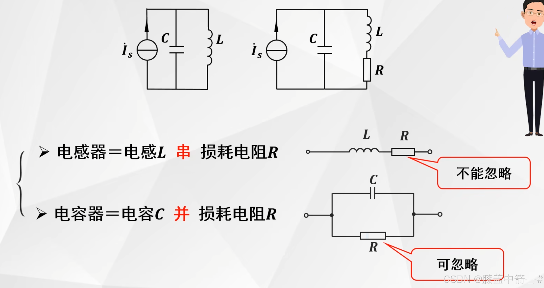 顾名思义,就是电感和电容并联,由于电感中电阻不能被忽略,电容中电阻可以被忽略,那么就可以呈现出,电感和电阻串联,再和电容并联。