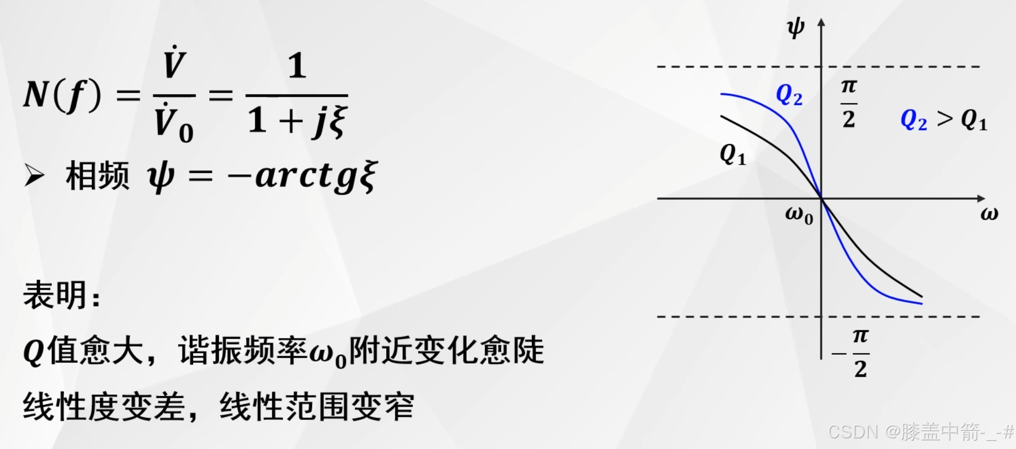 - 对于谐振曲线N(f),不仅有幅频特性曲线,还有相频特性曲线