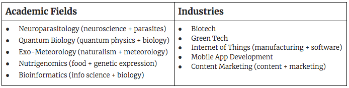 以下是近期通过组合创造出来的几千个新领域的几个例子:
