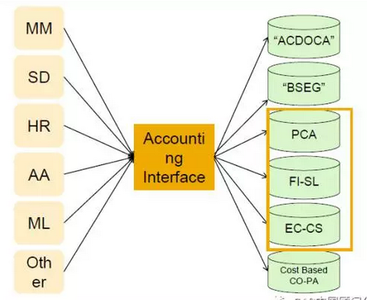(1)ACDOCA表包含了GL、CO、AA、ML、PA的所有字段,COEP, FAGLFLEXA, ANEP, MLIT等表的额数据存储在ACDOCA。