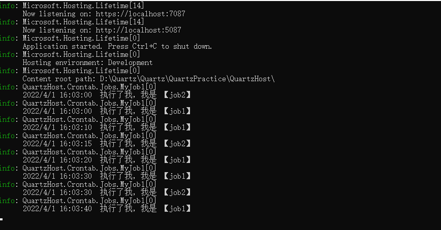logger.LogInformation(DateTime.Now.ToString() + " 执行了我,我是 【job2】");