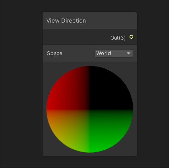 View Direction节点只有一个输出端口,标记为"Out",输出类型为Vector 3。这个三维矢量包含了在当前选择的坐标空间下的视图方向。