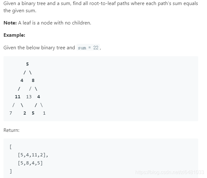 leetcode【DFS】-----113. Path Sum II(路径总和II)