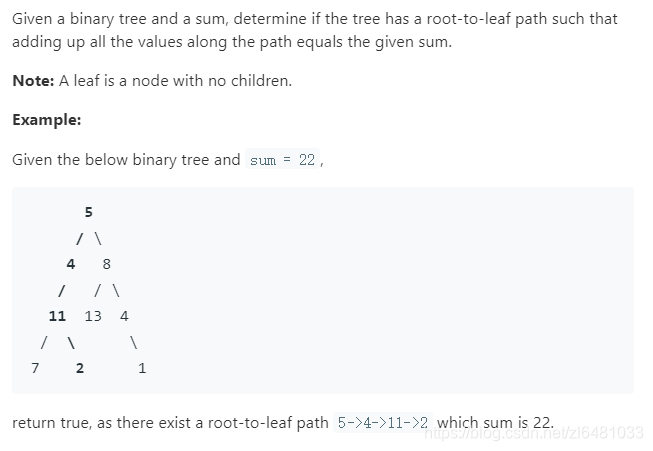 return hasPathSum(root->left,sum-root->val)||hasPathSum(root->right,sum-root->val);