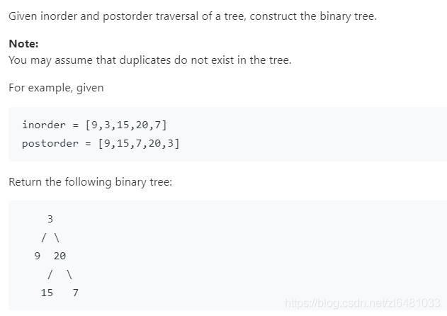 leetcode【DFS】-----106. Construct Binary Tree from Inorder and Postorder Traversal(构造二叉树)