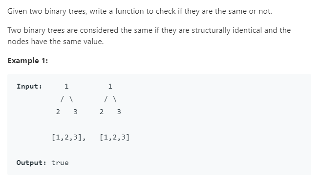 class Solution { public: bool isSameTree(TreeNode p, TreeNode* q) {