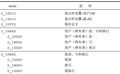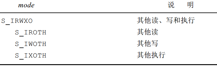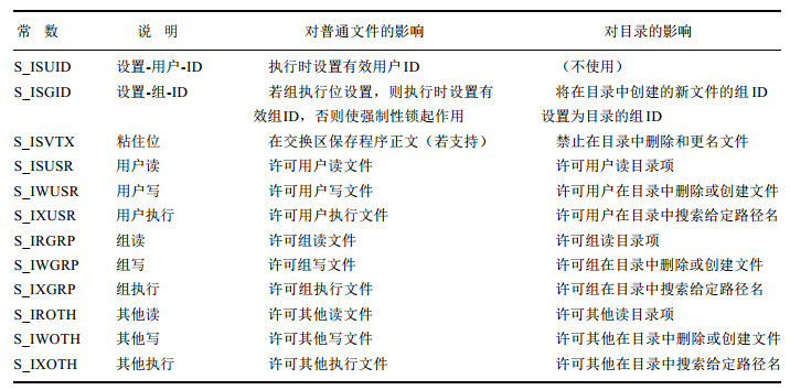 已经说明了所有文件的存取许可位,某些位有多种用途。如下表: