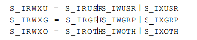 S_IRWXO 00007 mask for permissions for others (not in group)
