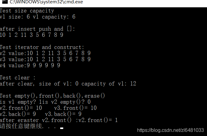 cout << "after clear, size of v1: " << v1.size() << " capacity of v1: " << v1.capacity() << endl;