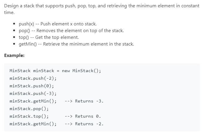 leetcode【设计问题】-----155. Min Stack(最小栈)