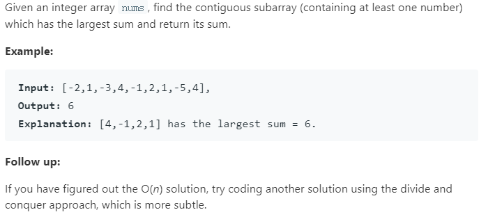 求一个数组中最大子序和,首先应该想到的做法定义两个变量,一个cur,记录当前的子序和,一个res,最终的子序和。先将cur设置为0,res设置为INT_MIN,然后遍历数组,cur等于cur和cur+nums[i]中的大的值,res等于res和cur中大的值,这样最后返回res就是要求的最大值。