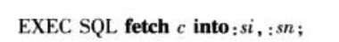 这条居于使得数据库系统执行这条查询并把执行结果存于一个临时关系中,当open语句被执行的时候,宿主变量的值就会被应用到查询中。如果SQL查询出错,数据库系统将会在SQL通信区域的变量中存储一个错误诊断信息。然后利用一系列fecth语句把结果元组的值赋给宿主语言的变量。