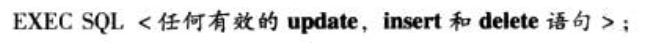用于数据库修改的嵌入式SQL表达式不返回结果,因此这种语句表达起来在某种程度上相对简单,数据库修改请求格式如下:
