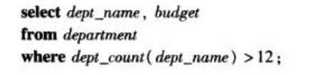 如上图,定义了这样一个函数,给定一个系名字,返回该系的教师数目,之后应用这个函数如下: