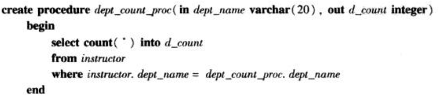 SQL也支持过程,dept_count函数也可以写成一个过程: