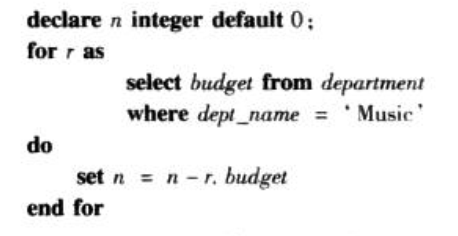 接下来的应用程序就可以利用宿主语言的特性对si和sn进行操作了。我们必须使用close语句来告诉数据库系统删除用于保存查询结果的临时关系,对于上面的例子: