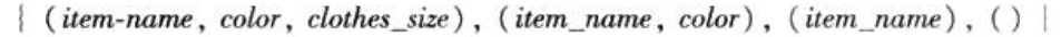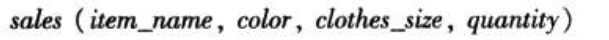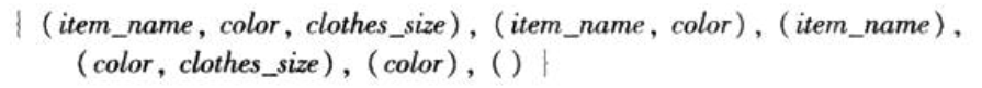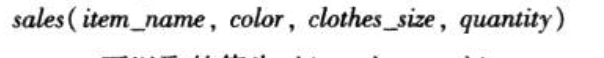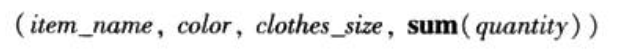 考虑这样一个应用,某商店想要找出流行的服装款式,假设衣服的特性包括商品名、颜色、尺寸,并且我们有一个关系sales,它的模式是