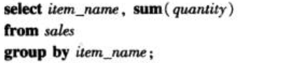 ,我们可以编写简单的group by 查询来得到每个商品名所对应的商品销售量: