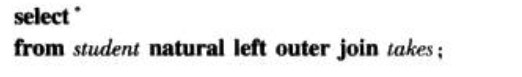 例如,为了保证前面的学生出现在结果中,可以连接结果中加入一个元组,它来自student关系的属性的值设置为该学生的值,剩下takes的属性的值设置为null。