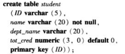 SQL允许为属性指定默认值,如下的create table语句所示: