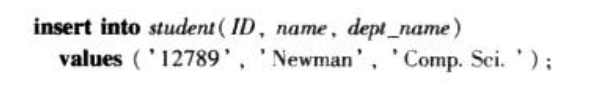 tot_cred默认为0。这样当一个元组插入到student关系中,如果没有给出tot_cred属性的值,那么该元组在此属性上的取值为0。如下插入省略了tot_cred。